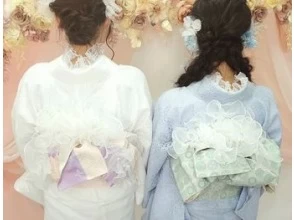 Kimono, bag, sandals, obi, obi decoration, undershirt, underwear, tabi socks, hair accessories, and your choice of accessories are included in the rental, dressing, hair styling, and consumption tax.